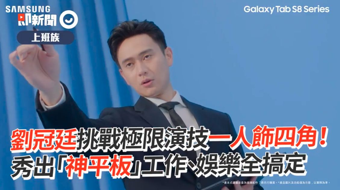 現代人愛玩、愛分享偏偏工時又長,一整天下來根本離不開手機、電腦,最好能有「神平板」滿足多元需求,將工作娛樂一次搞定!Samsung最新一季廣告特別邀請高顏值實力派演員劉冠廷,發揮逆天演技挑戰一人分飾四角,完美詮釋Galaxy Tab S8 Series旗艦平板在不同生活情境中的多元運用。