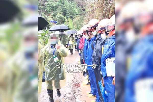 中國東方航空一架波音737-800客機21日發生空難,從昆明飛往廣州的途中,墜毀在廣西梧州,機上132人如今仍失聯。由於事發至今已第5天,機上人員生還的機率愈來愈低,許多乘客家屬趕往現場,用陶罐裝一把泥土回家,救難人員也在旁立正低頭行禮,畫面十分哀悽。