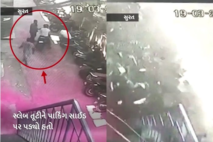 根據《印度時報》報導,古吉拉特邦的蘇拉特縣(Surat)在19日發生一起工安意外,在中午12時許時,有一棟施工中的工廠外牆崩塌,從曝光的監視器畫面可以看到,有4名男子正在一旁的機車停車區聊天,接著有另一名男子經過,結果磚瓦突然從空中崩落,其中1人緊急往內跑,其餘4人全被砸中。
