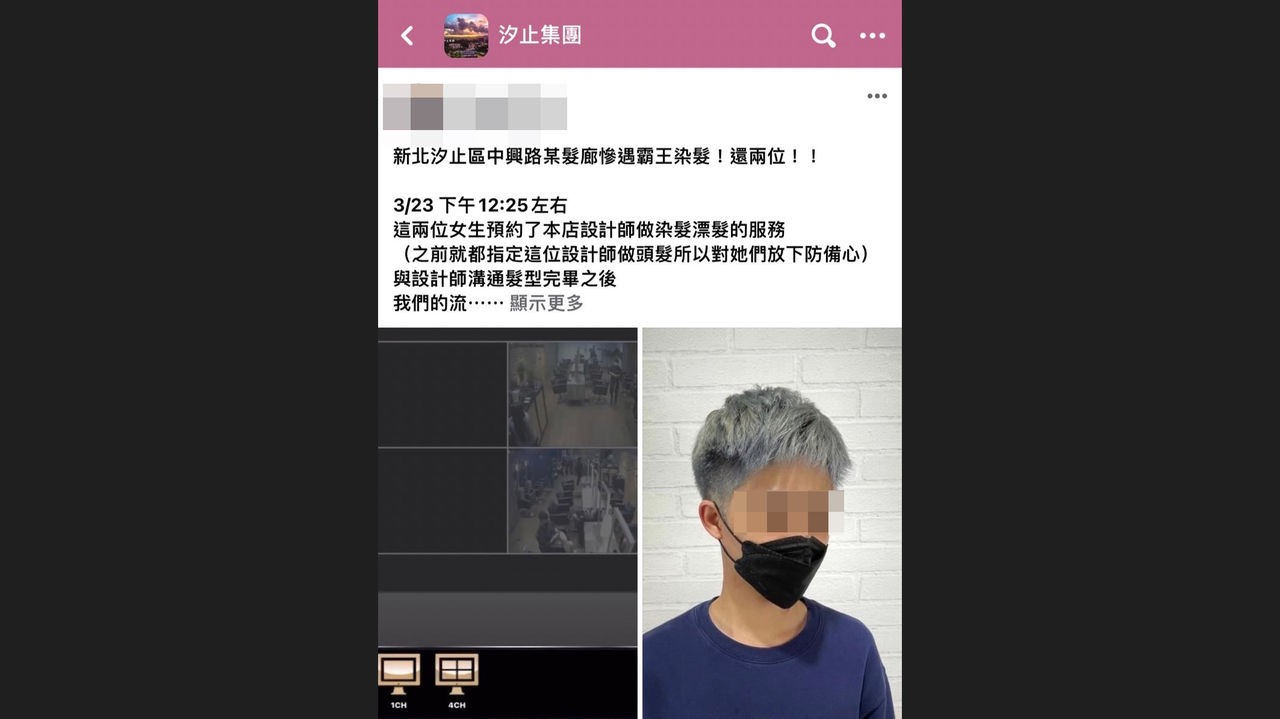 業者並透過臉書社團「汐止集團」PO文示警:「新北汐止區中興路某髮廊慘遇霸王染髮!還兩位!!」、「3月23日下午12時左右兩位女生預約本店設計師做染髮漂髮的服務」、「之前就都指定這位設計師做頭髮,所以對她們放下防備心」,未料兩女均指定高檔漂染、燙髮護髮等所費不貲的高價服務,事後藉故以提款卡未帶為由賴帳。