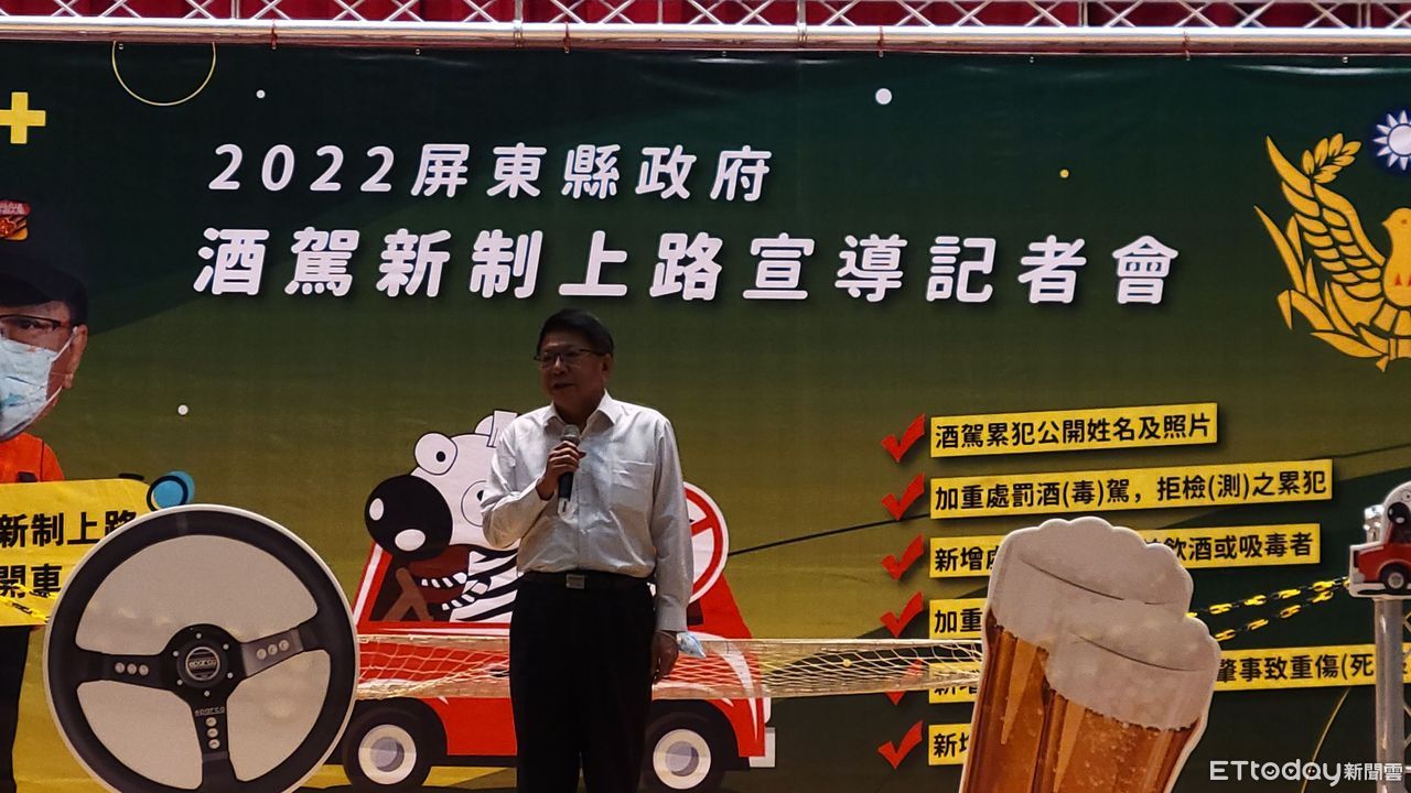 為防制酒駕悲劇上演,今年1月底政府通過酒駕修法,加重酒駕刑罰、同車乘客「連坐罰」、強制配備酒精鎖、累犯公布姓名、照片和違法事實等新制,並將於3月31日正式實施;屏東縣政府警察局為了配合酒駕新制及落實酒後代駕政策,邀請屏東縣長潘孟安拍攝相關交通安全宣導短片,並在今(29)日下午15時,在縣府禮堂舉辦「屏東縣酒駕新制上路記者會」活動,宣示「防制酒駕」及守護民眾用路安全之決心。