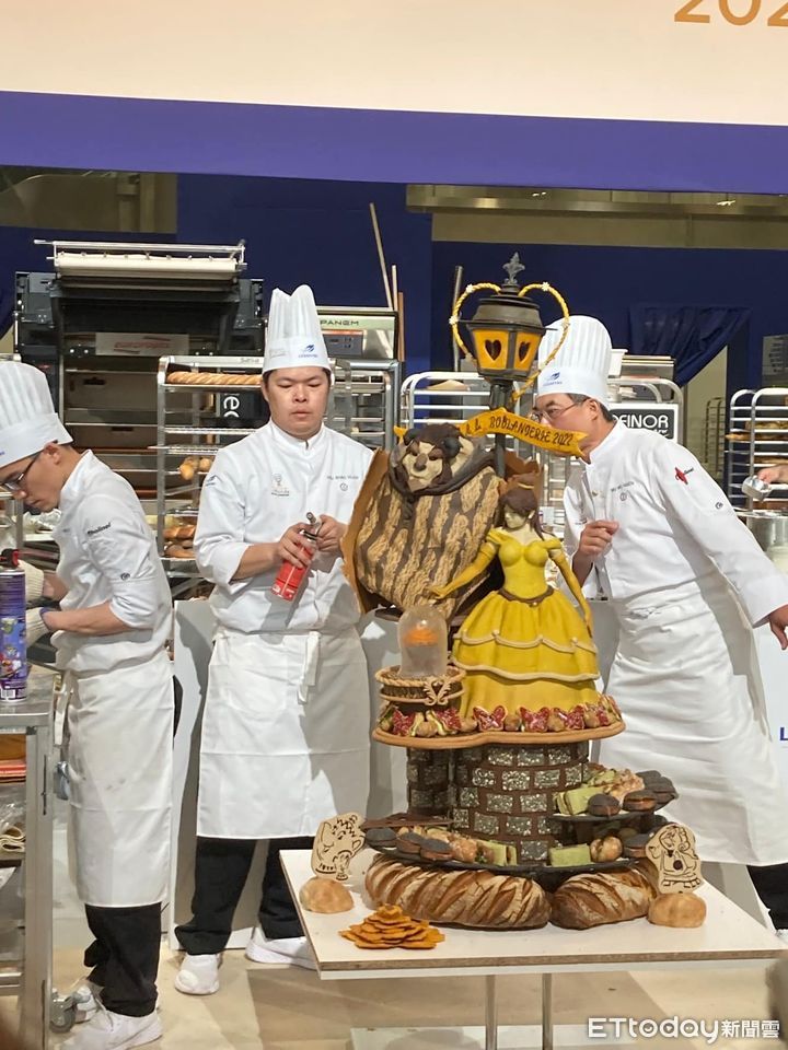 ▼台灣代表隊首次獲得世界麵包大賽團體冠軍,「美女與野獸」造型就是出自徐紹桓的巧手。(圖/取自駐法國台北代表處臉書)