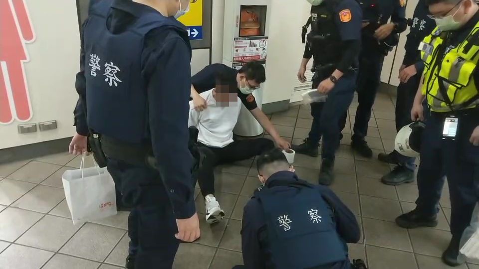 ▲周男在捷運站廁所內吸食K他命,遭警方上銬大喊「我是誰!」。(圖/記者游宗樺翻攝)