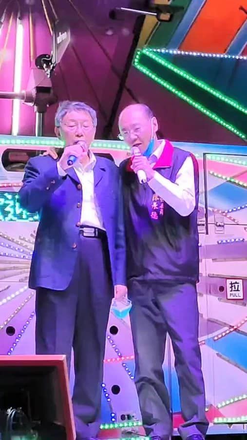 ▼台北市長柯文哲與國民黨議員陳永德搭肩高歌。(圖/林鶴明臉書)