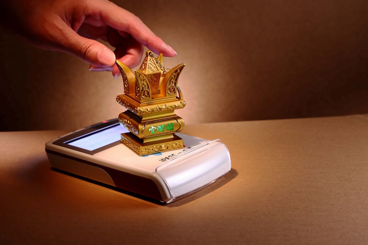 大甲鎮瀾宮將於國曆4月8日正式起駕,為期9天8夜,除了跟隨媽祖步行遶境,紀念商品如秩序帽、涼感巾,也吸引信眾爭相收藏,而現在又多了一項文創設計準備開搶,把神轎頂上莊嚴的五指山銅飾,等比例縮小的立體一卡通,不僅方便隨身攜帶,成為日常生活中的另類平安符,嗶卡時還會發光。