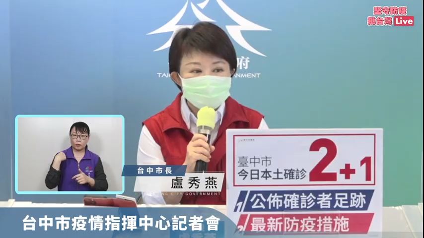 ▲台中市長盧秀燕公布今(1)日台中新增2+1例本土個案。(圖/翻攝自YouTube/盧秀燕)