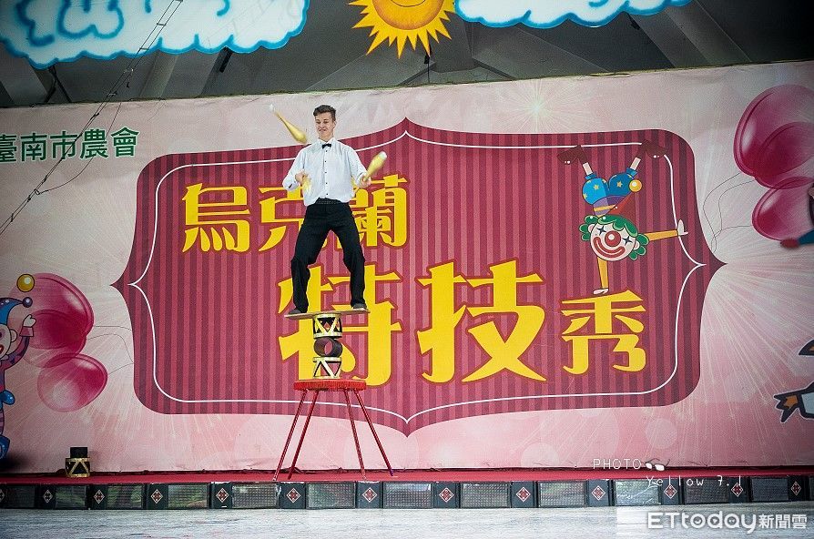 ▲台南市政府推出限定活動「兒童節烏克蘭魔幻特技秀」,邀請市民攜帶小朋友一起體驗來自烏克蘭馬戲學校的雜技表演。(圖/記者林悅翻攝,下同)
