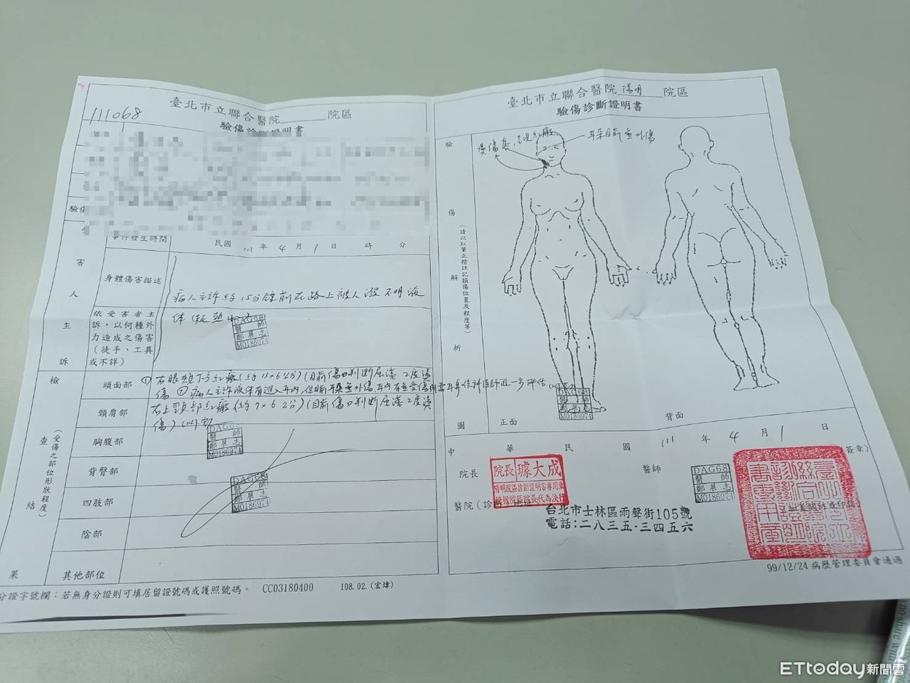 ▲士林區黃先生晚間8時30分騎車行經忠誠路二段要接小朋友下課,突遭潑灑不明液體,診斷出二度灼傷 。(圖/黃先生提供)