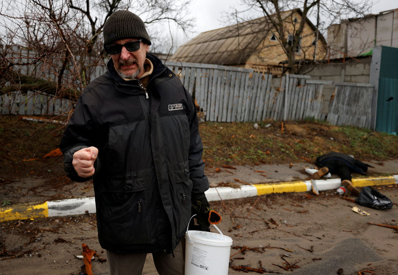 俄羅斯自2月24日揮兵攻打烏克蘭後,便加強火力企圖攻下首都基輔,然而卻陷入苦戰,因此在3月底暫時撤離駐守在基輔附近小鎮的部隊。被佔領1個月的基輔郊區小鎮布查,在俄軍離去後淪為廢墟,大街上隨處可見平民屍體。一名66歲的老翁在俄軍撤離後,返家查看情況,卻悲痛發現多年老友就陳屍在自家門口。