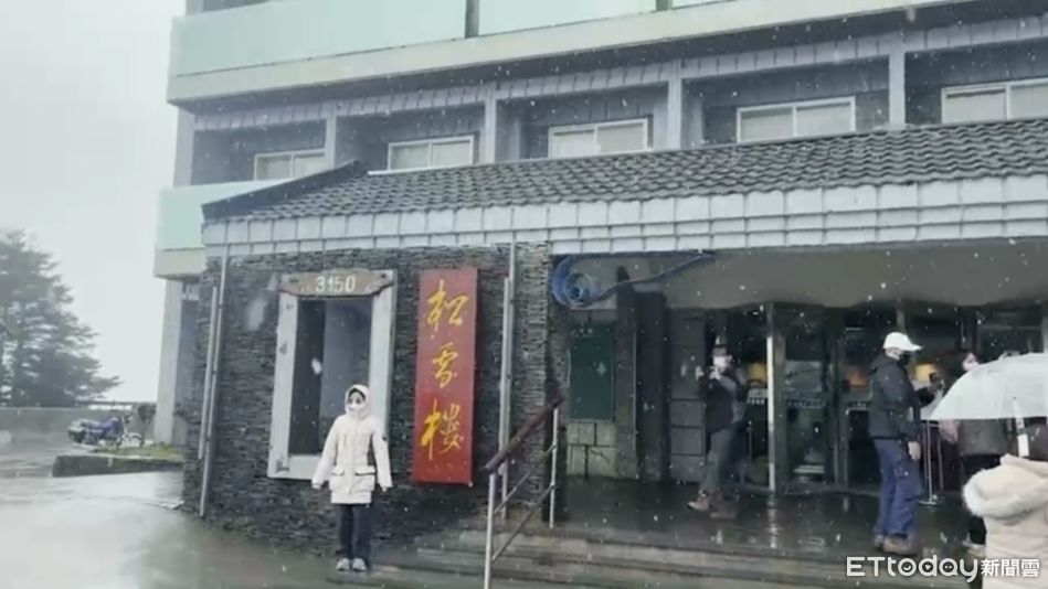 ▲今日受到冷氣團的影響,位於南投合歡山的松雪樓開始下雪,民眾出來賞雪。(圖/記者高堂堯翻攝)