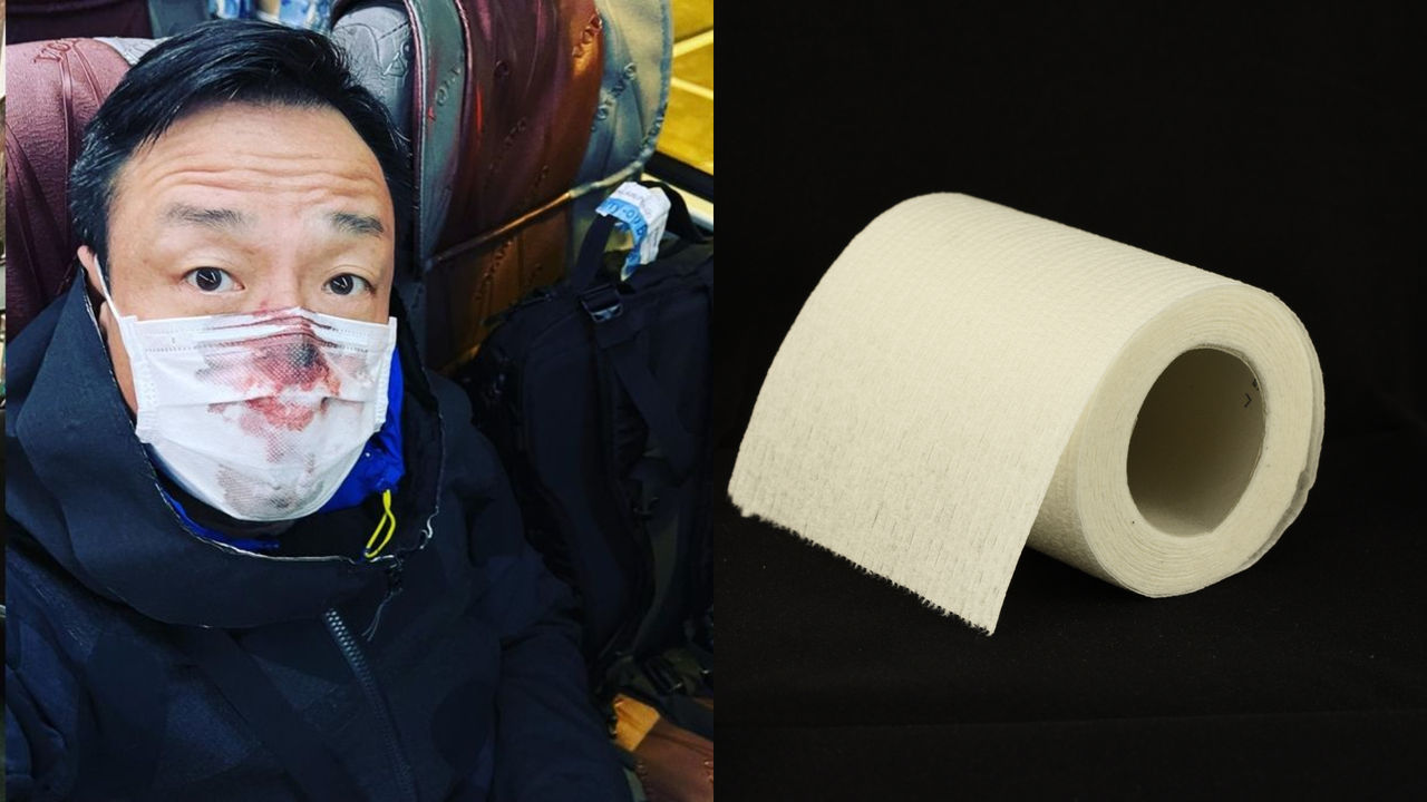 王喜採檢流鼻血後在社群平台PO文,稱醫護「遞給我一段約三米長,捲成一束的廁紙,說用來止血。常識告訴我──拒絕。」