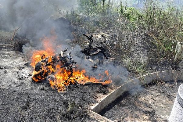 這名女子在臉書社團「清水小鎮」表示,她的機車5日停放在公墓,卻遭到大火燒毀,還找不到是誰燒的,只能自行收拾殘骸,於是上網詢問,希望引發火燒山的人能夠自首。