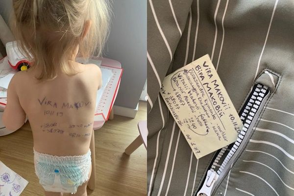 烏克蘭33歲母親馬科維(Sasha Makoviy)在俄羅斯侵烏第一天,就像「岳母刺字」一樣,在2歲女兒維拉(Vira)背上寫下聯絡方式,這樣即使女兒在逃難過程中與她失散,或是年幼的女兒成為孤兒後,仍有人能憑此確認女兒的身份,代替她好好照顧女兒。