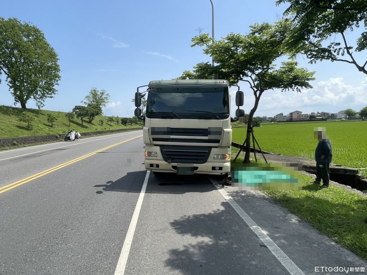 ▲宜蘭五結鄉溪濱路三段,6日發生婦人不幸遭砂石車輾斃事件。(圖/記者游芳男翻攝,下同)