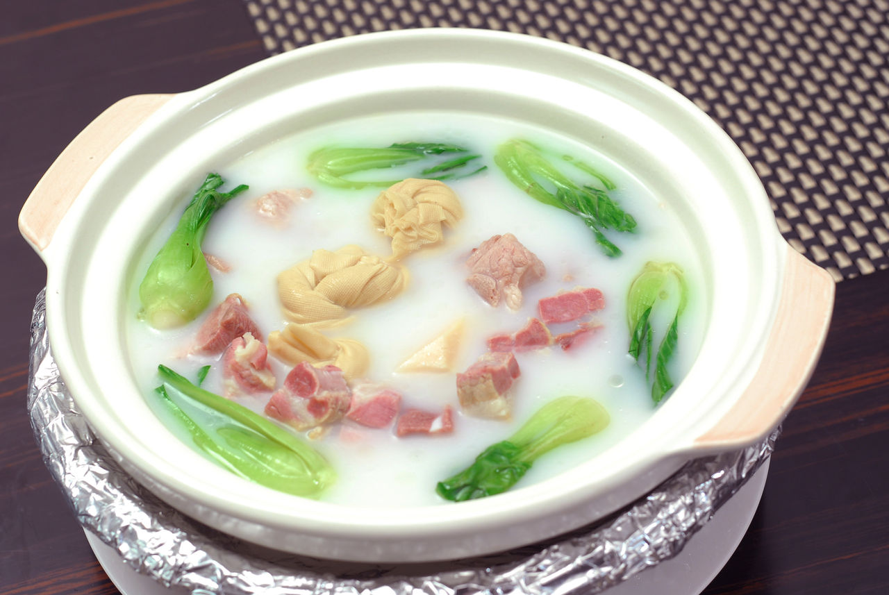 終於大功告成,銷魂又美味的「醃篤鮮」就可端上桌了,最後王瑞瑤表示,以上是家庭版的作法,若想吃飯店大廚版本,就要用「一般高湯去煮」,而所謂的「一般高湯」是雞/豬和水以1:2比例去小火熬8小時,然後再用白湯下去烹煮。
