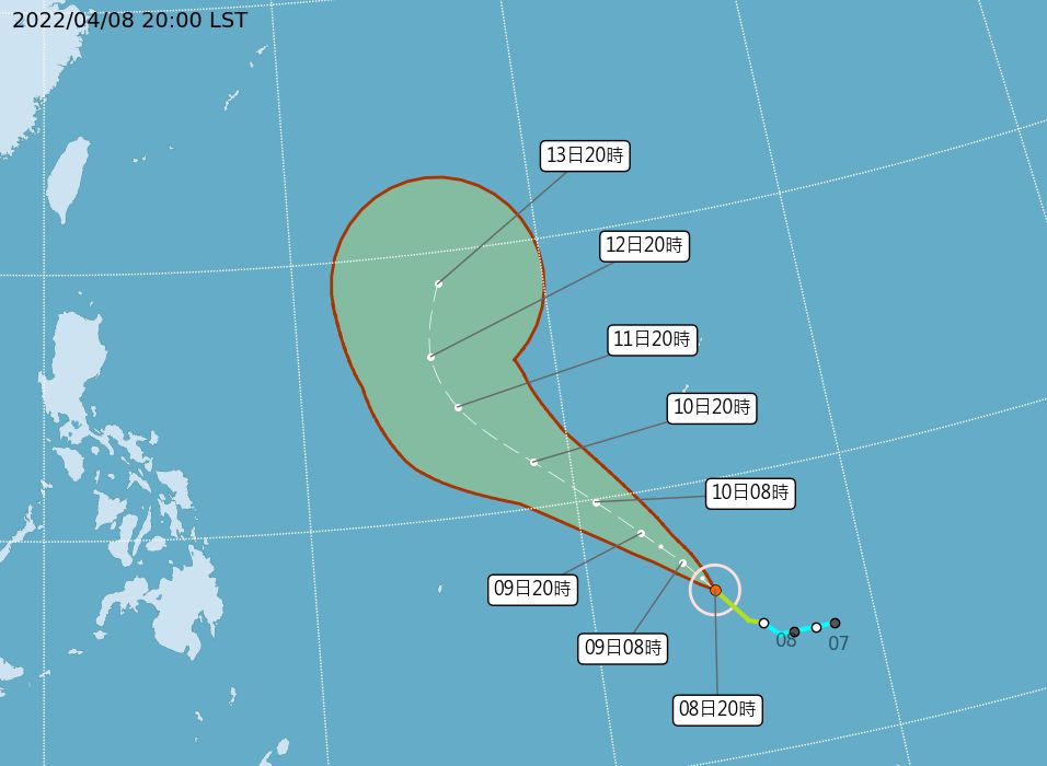 ▼馬勒卡颱風4/14預測位置。(圖/中央氣象局)