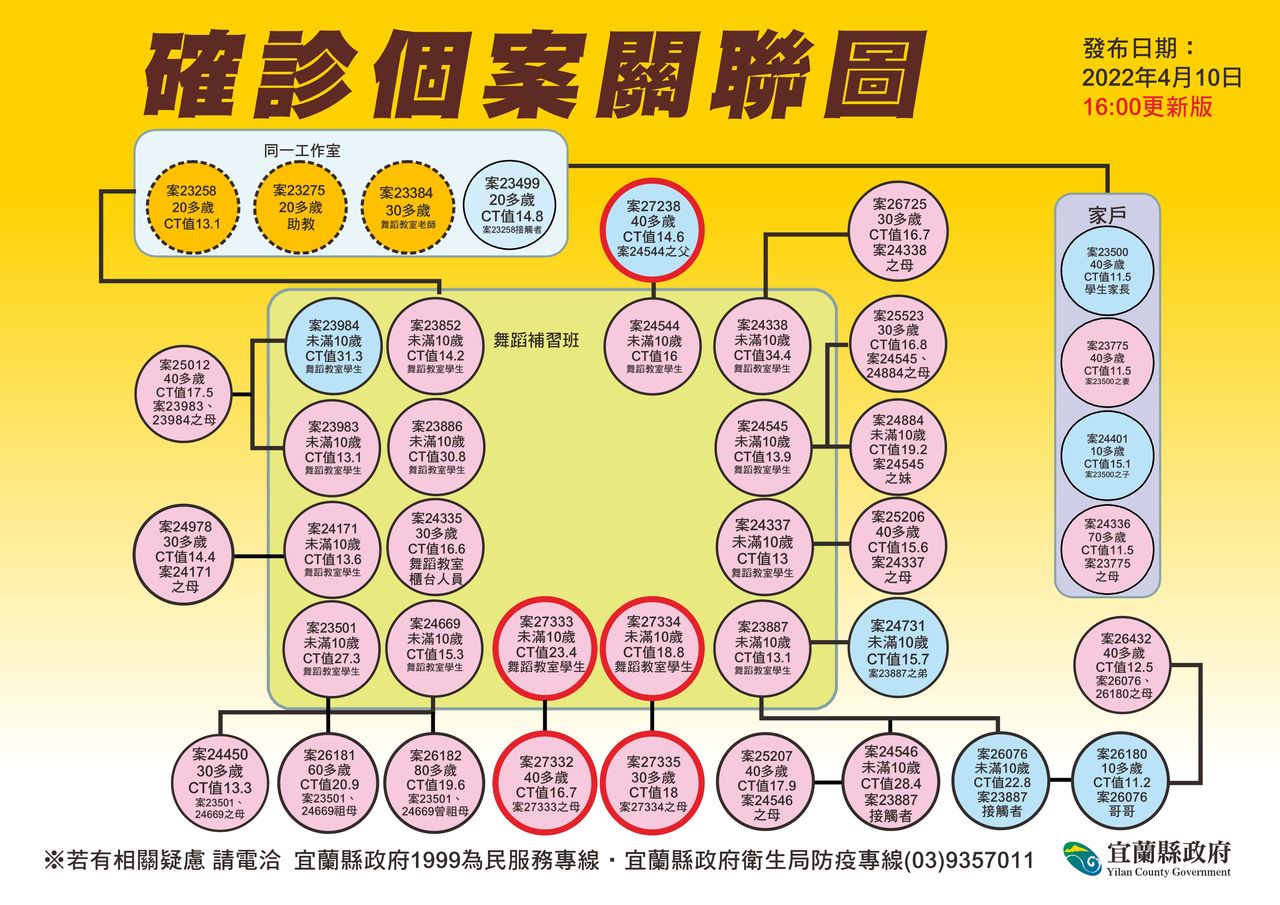 ▲宜蘭4/10新增12例,5例是舞蹈班傳播鏈,7例家庭聚會。(圖/宜縣府提供,下同)