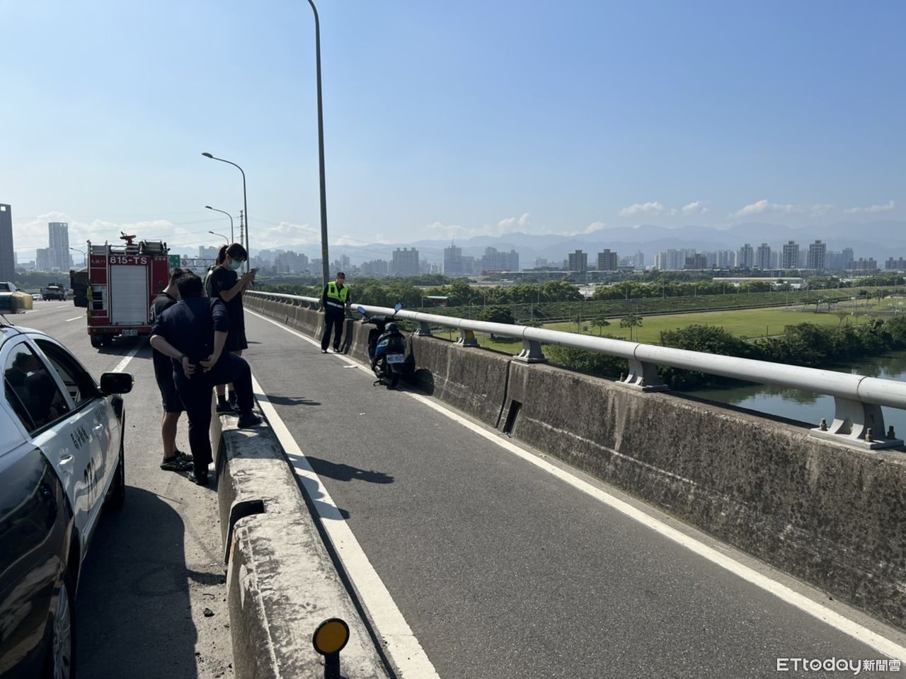 據悉,56歲丁姓男子12日凌晨3時許騎機車離家,獨自騎上台65線新莊段高架橋,將車停在機車道上,不明原因從橋上墜落掉進大漢溪;上午7時許,行經的民眾發現機車阻礙通行,立即通報110。