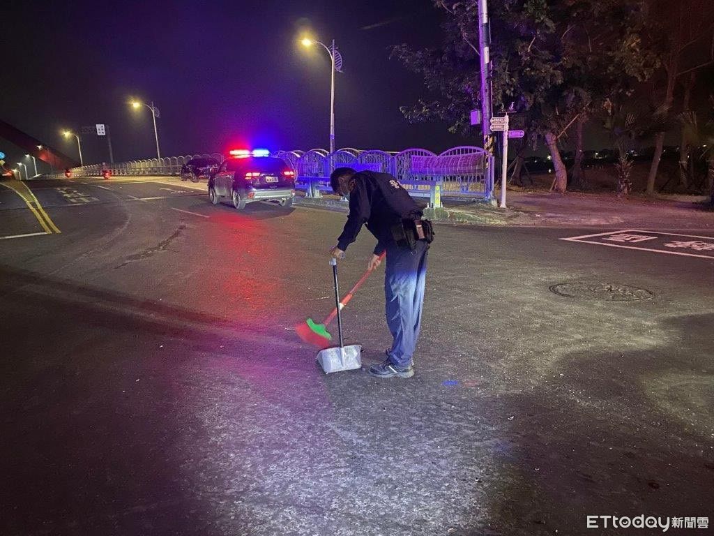 另自小客駕駛許男(71歲)因劇烈的撞擊,造成車頭嚴重毀損無法動彈,橫放在快車道上,許民當下不知所措,因時值深夜視線不佳,無法立即聯絡到拖吊車,員警擔憂這些碎片可能會造成其他車輛爆胎風險,導致二次傷害,當機立斷決定合力推車,將該車推移至路邊安全處所,並向附近住戶借掃地用具,分工合作,快速清掃路面碎片,讓馬路快速恢復交通順暢,還給用路人安全乾淨的道路,讓許男直說不好意思麻煩警察了,民眾經過時發現警方在清掃路面維護民眾行車安全,皆豎起大拇指感謝警方幫忙與協助。