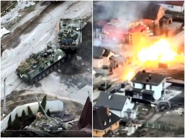戰爭前線情況常是危險又混亂,俄羅斯軍隊在烏克蘭似乎也出現「敵我不分」的狀況。烏克蘭無人機在基輔西部德米特里夫卡村(Dmytrivka)拍下一段畫面顯示,俄軍部隊在巡邏時遭遇烏軍伏擊,一輛畫有「V字」的俄軍坦克竟朝著另一輛帶有相同標誌的坦克發射主砲,攻擊自家人。