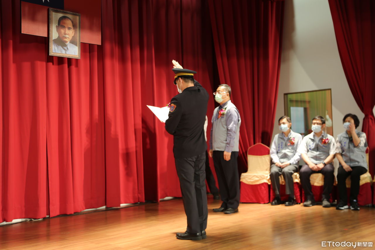 ▲苗栗縣消防局人事異動,原消防局長徐新淵將於15日退職,由消防局副局長匡夢麟(右)陞任 。(圖/記者黃孟珍攝)