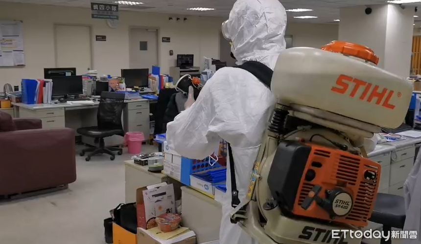 ▲汐止警分局16日晚間再傳偵查隊警員確診、分局全面清消。(圖/記者張君豪翻攝)