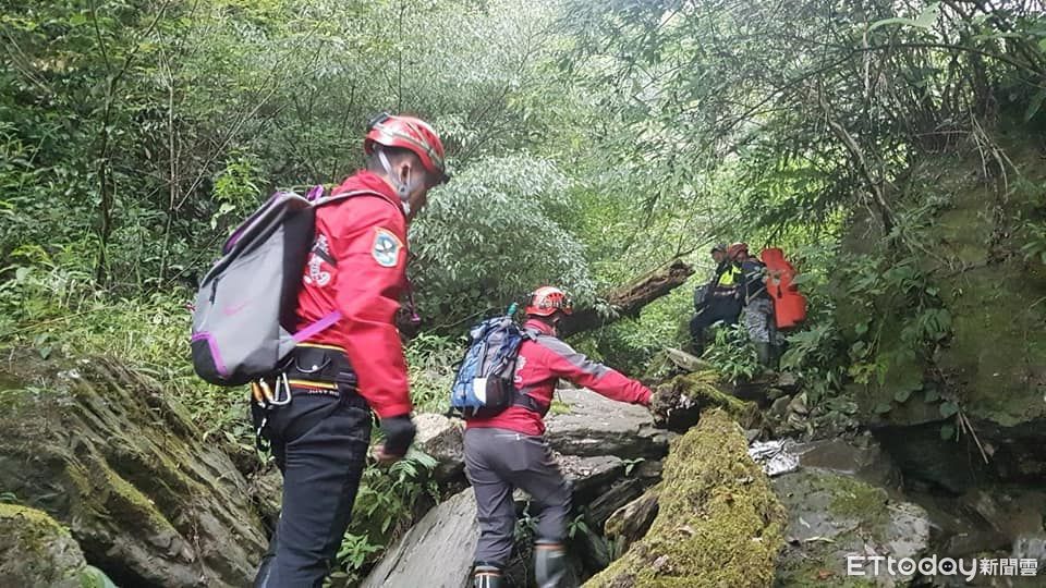 ▲清境農場溪谷驚現無名男屍,由山搜隊運送下山(下同)。(圖/神鷹山區搜救隊清境中隊提供)