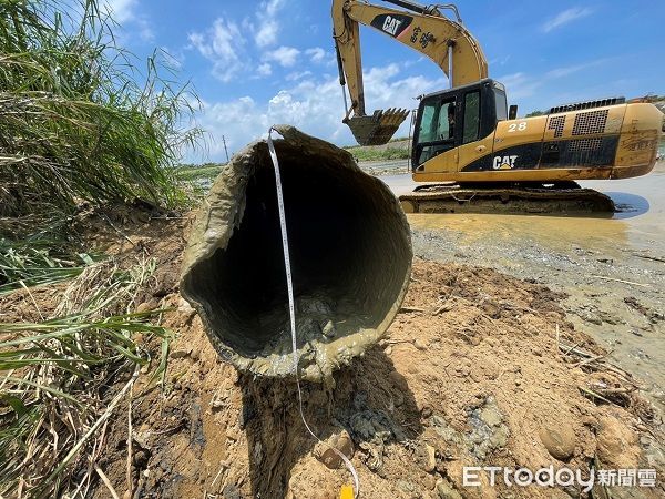 ▲▼將不肖業者排放至河床的長長暗管挖出。(圖/記者楊熾興翻攝)