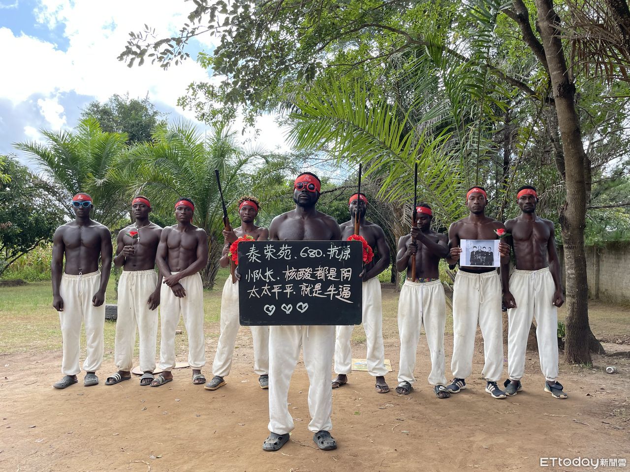 ▲赤裸著上身的非洲黑人肌肉小哥在鏡頭前載歌載舞。(圖/上海泰榮苑志願者群提供)