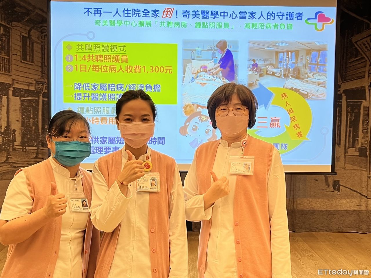 ▲台南奇美醫院中心護理部,力推「共聘病房、鐘點照服員」措施,創造醫病護三贏。(圖/記者林悅攝)