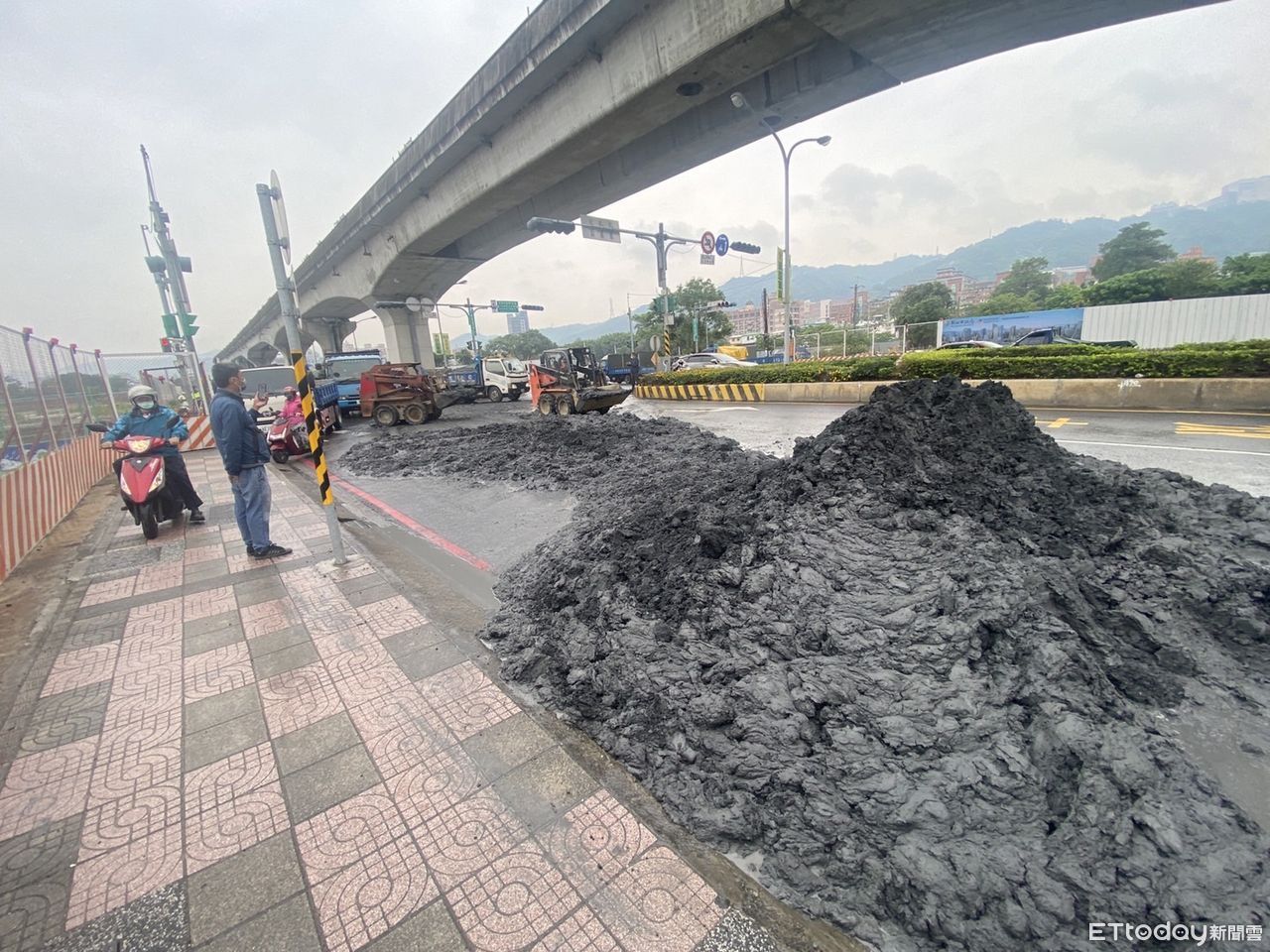 據了解,35歲林姓男子駕駛砂石車,從塭仔圳載滿工地廢土,沿著新北大道往三重方向行駛,在明志路145巷口時,後車斗廢土竟突然傾瀉而出,散落在新北大道上,警方立即到場疏導交通,初步研判後車斗車門卡榫未拴緊,導致過彎時卡榫鬆脫。
