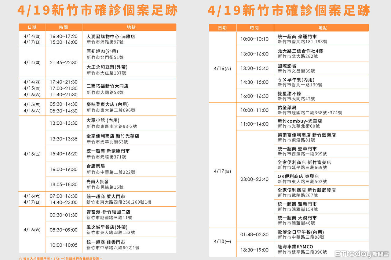 ▲竹市府公布19日確診者疫調足跡。(圖/記者黃孟珍翻攝)