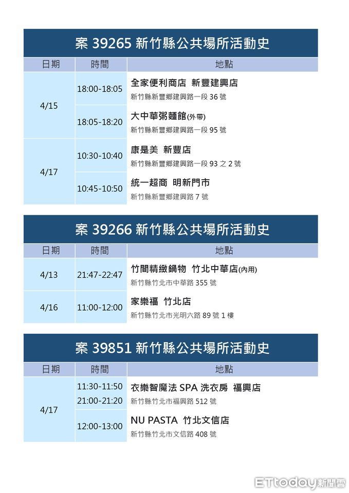 ▲新竹縣20日新增23例確診,縣府也公布6鄉鎮28處足跡疫調。(圖/記者黃孟珍翻攝,下同)