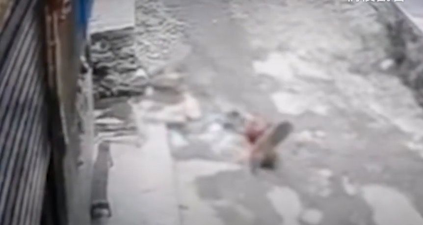 劇情實在太誇張,村民調閱監控驚呼,太可怕!畫面中,女童一個人玩耍,野猴子在背後躡手躡腳觀察,突然一個箭步把人猛力拖走,還好附近一位熱心人大叫追趕野猴,才平安救下孩子。
