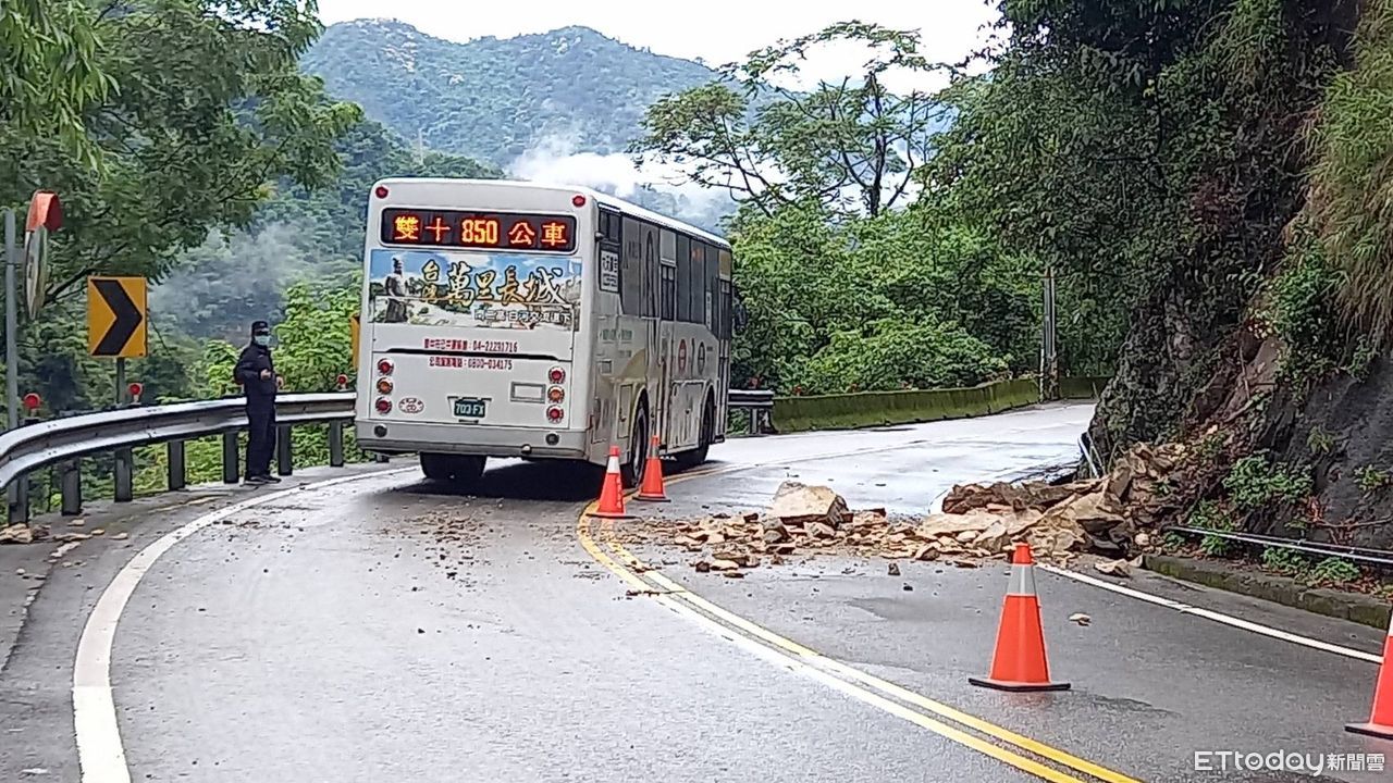 連夜下雨造成土石鬆動,20日清晨在中橫公路32.3公里處,道路邊坡上方土石坍落在車道上,因坍方點正好在轉彎處,員警獲報後為避免發生危險,立即趕赴現場擺置三角錐,並通報工務段前往處理。