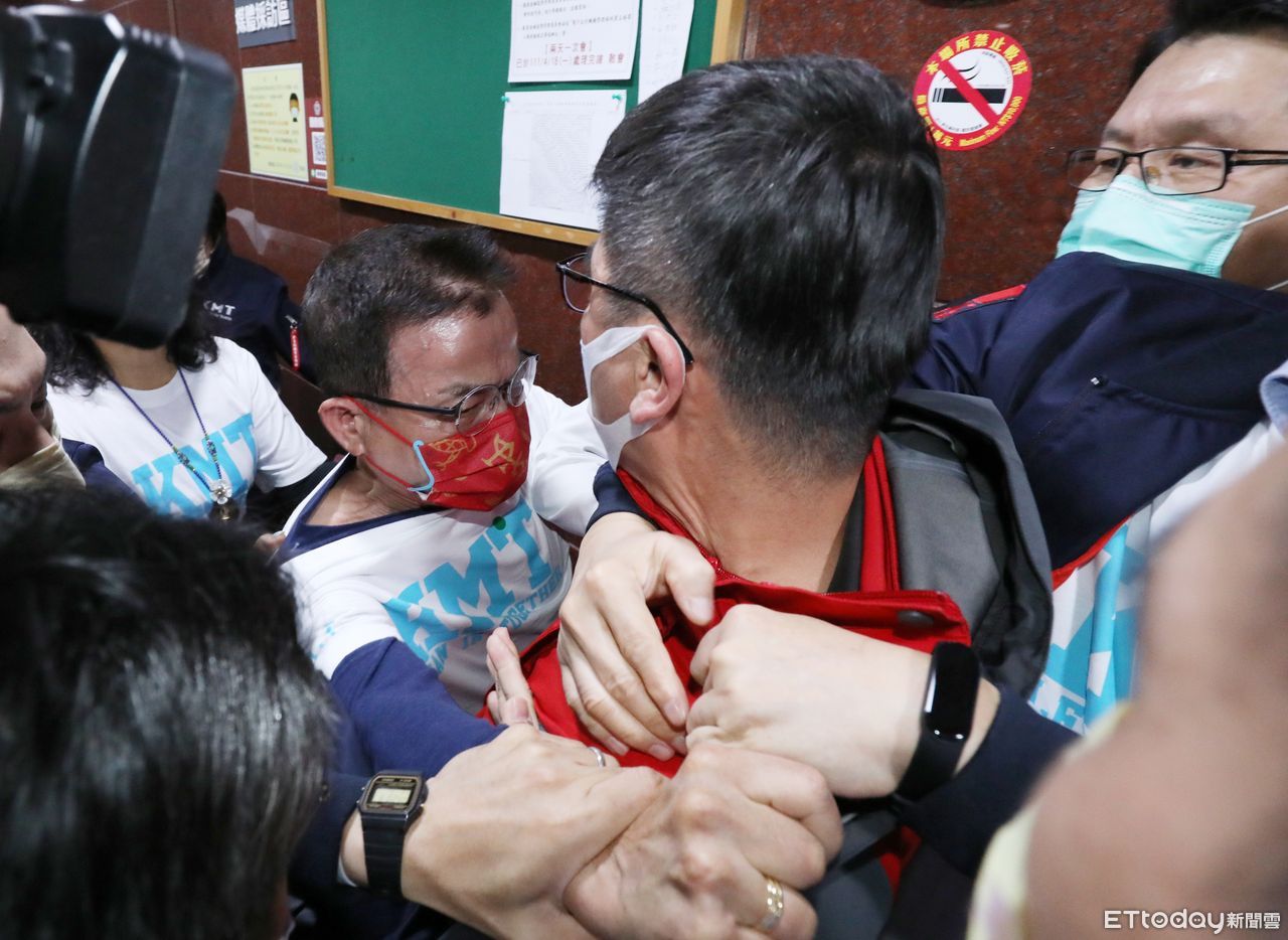 ▼鍾佳濱在推擠中被鎖喉嚨。(圖/記者屠惠剛攝)