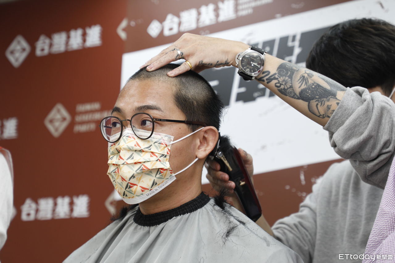 2022地方選舉腳步近逼,台灣基進台南黨部主委、台南市東區市議員參選人李宗霖將在23日入營接受教召,22日舉行記者會「當眾剃頭」,與刻有「決不投降,台灣獨立萬歲」的士兵吊牌合影,展現全黨保家衛國、只有戰死沒有投降的決心。李宗霖說,很多的網友會嘲笑台獨不當兵,但他要剃頭展現決心,「台灣基進所有的幹部都不會投降且力戰到底,我教召,我驕傲」。