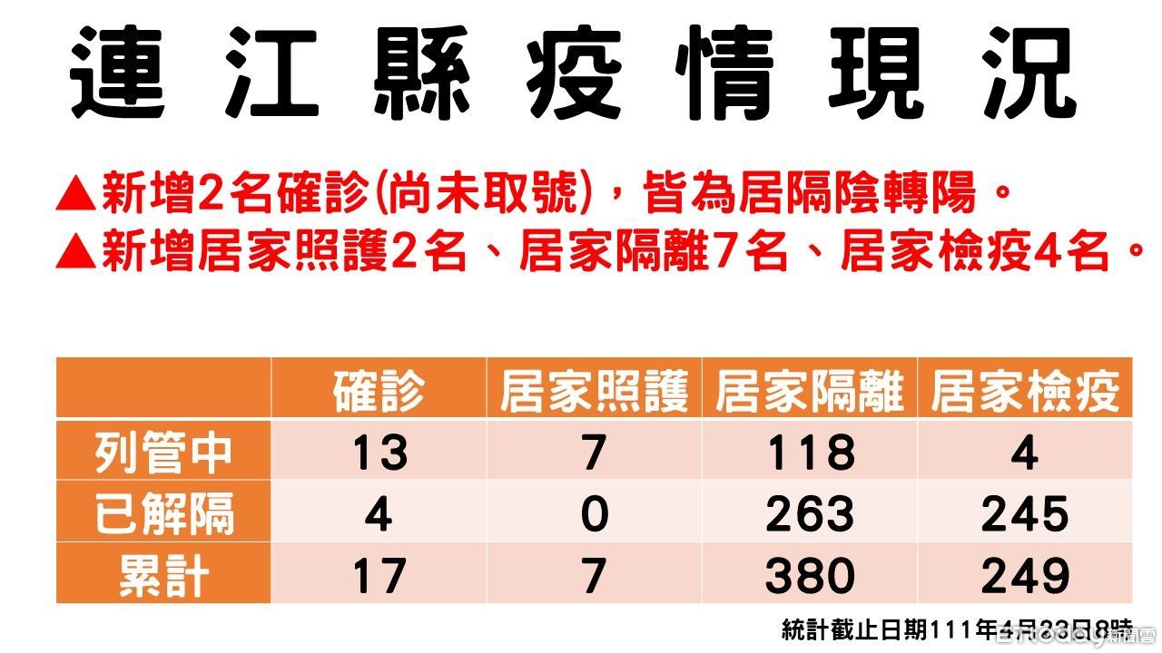 ▲連江縣疫情指揮中心公布23日疫情。(圖/記者林名揚翻攝)