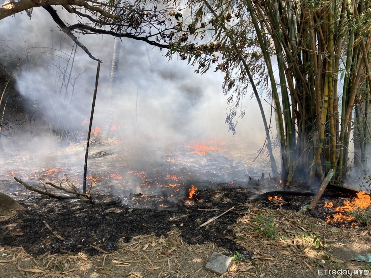 ▲台南市安南區台江國家公園,發生一起疑似民眾玩耍燃放沖天炮不慎造成國家公園林木火災,在警義消合力搶救下,迅速控制火勢及撲滅火勢,有效保護台江國家公園林木。(圖/記者林悅翻攝,下同)