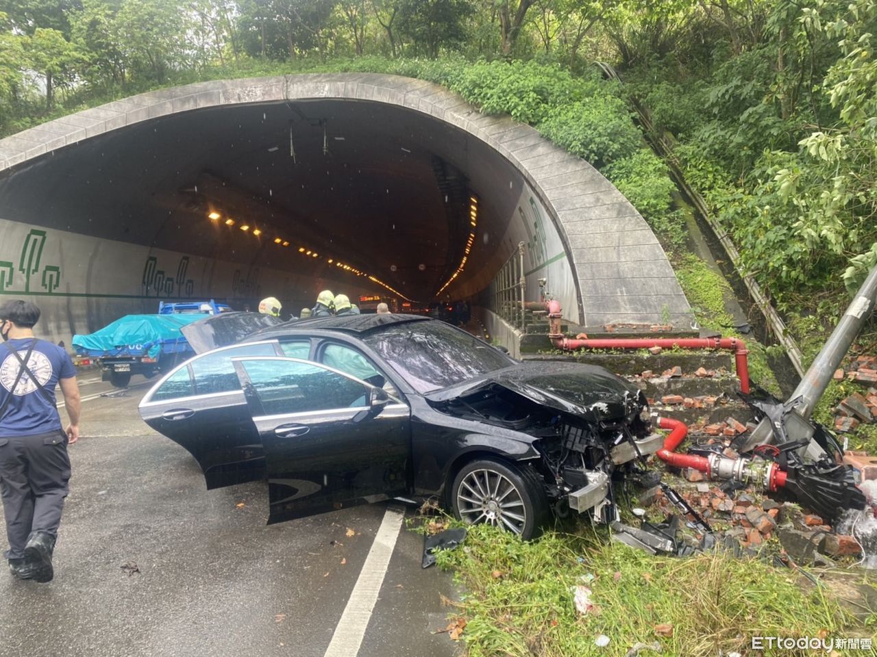 信義警方指出,當時正逢午後大雨,賓士車疑似雨勢、未保持妥善車距才會追撞前車,雙方駕駛目前均送醫治療中,目前尚未進行酒測,該隧道口並無監視器,警方將蒐集兩車上的行車紀錄器釐清事發過程。