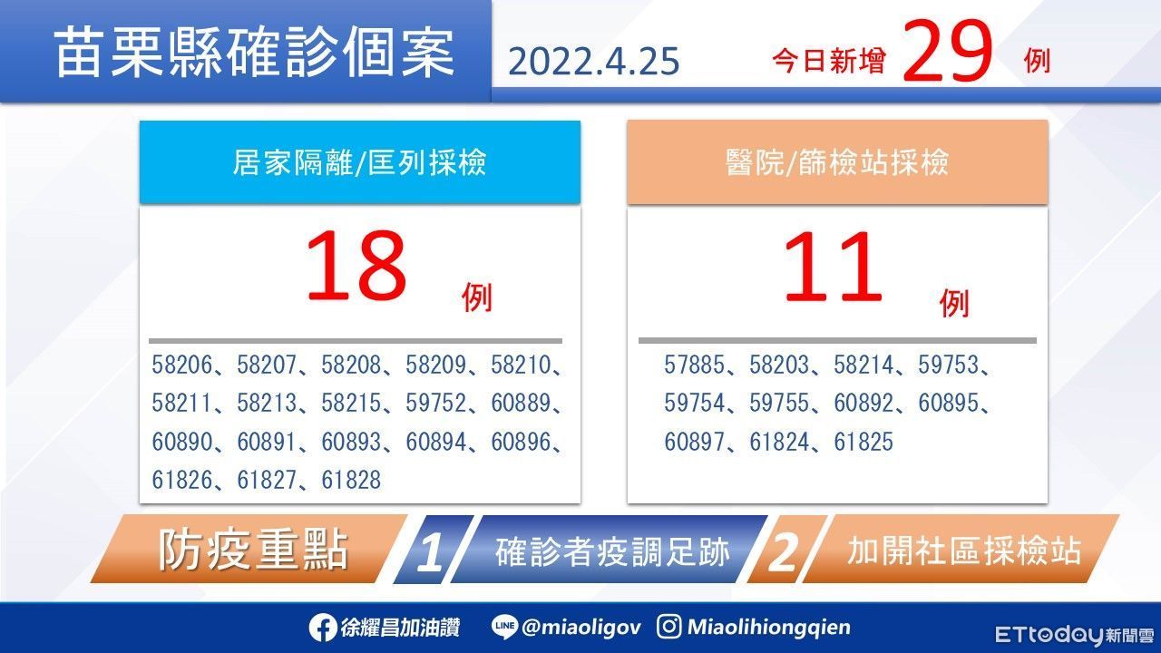 ▲苗栗縣25日新增確診29例,其中年齡僅1歲就有3例 。(圖/記者黃孟珍翻攝)
