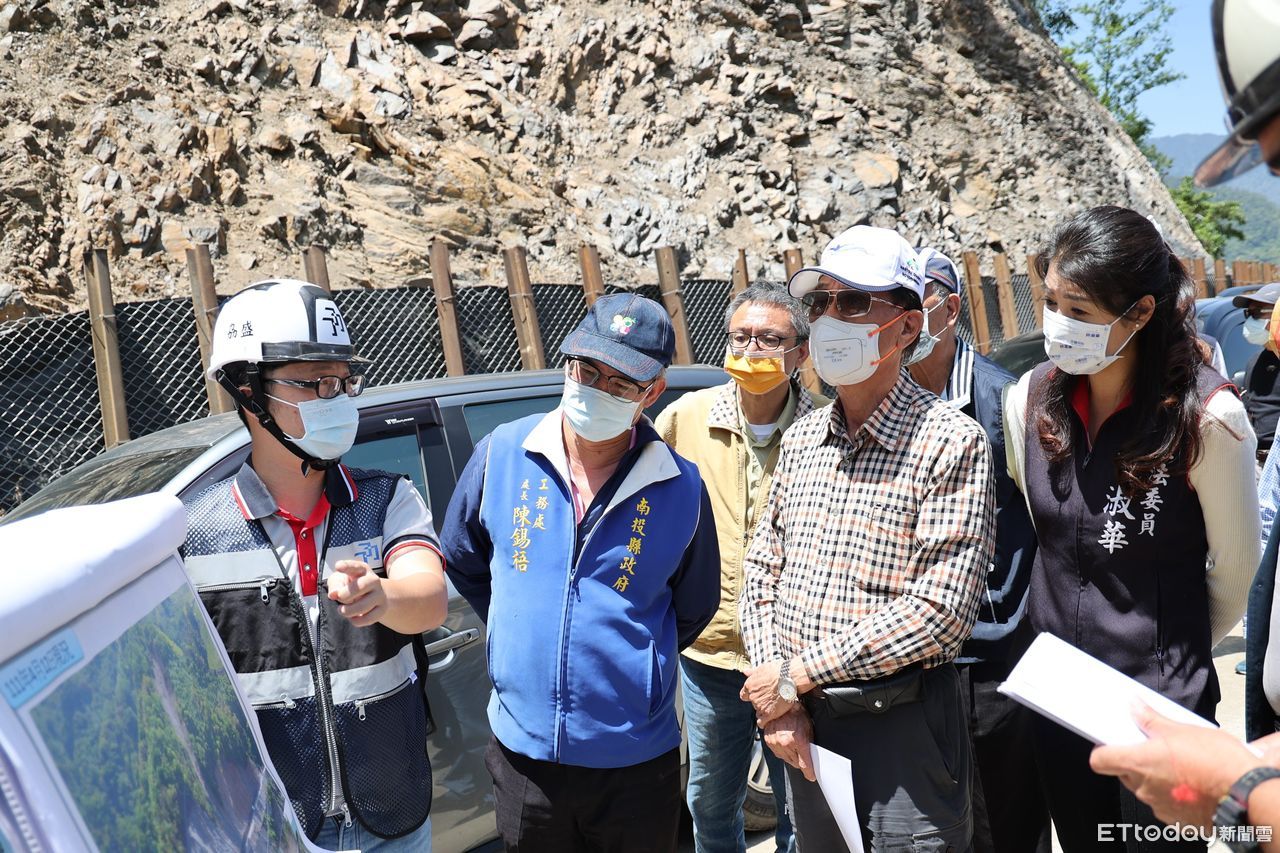 ▲南投縣長林明溱會勘仁愛鄉農路及投89線15K大崩塌處(下同)。(圖/南投縣政府提供)