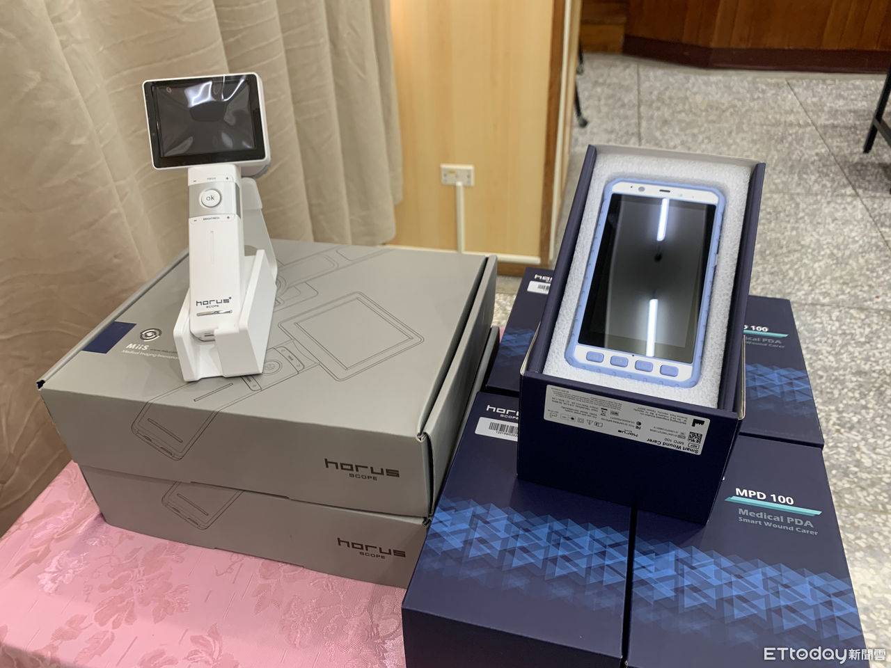 ▲晉弘科技公司更捐贈「檢查鏡」、「赫羅斯數位眼科攝影機」、「赫羅斯視網膜影像分析軟體」與傷口照護機。(圖/記者蔡佩旻攝)