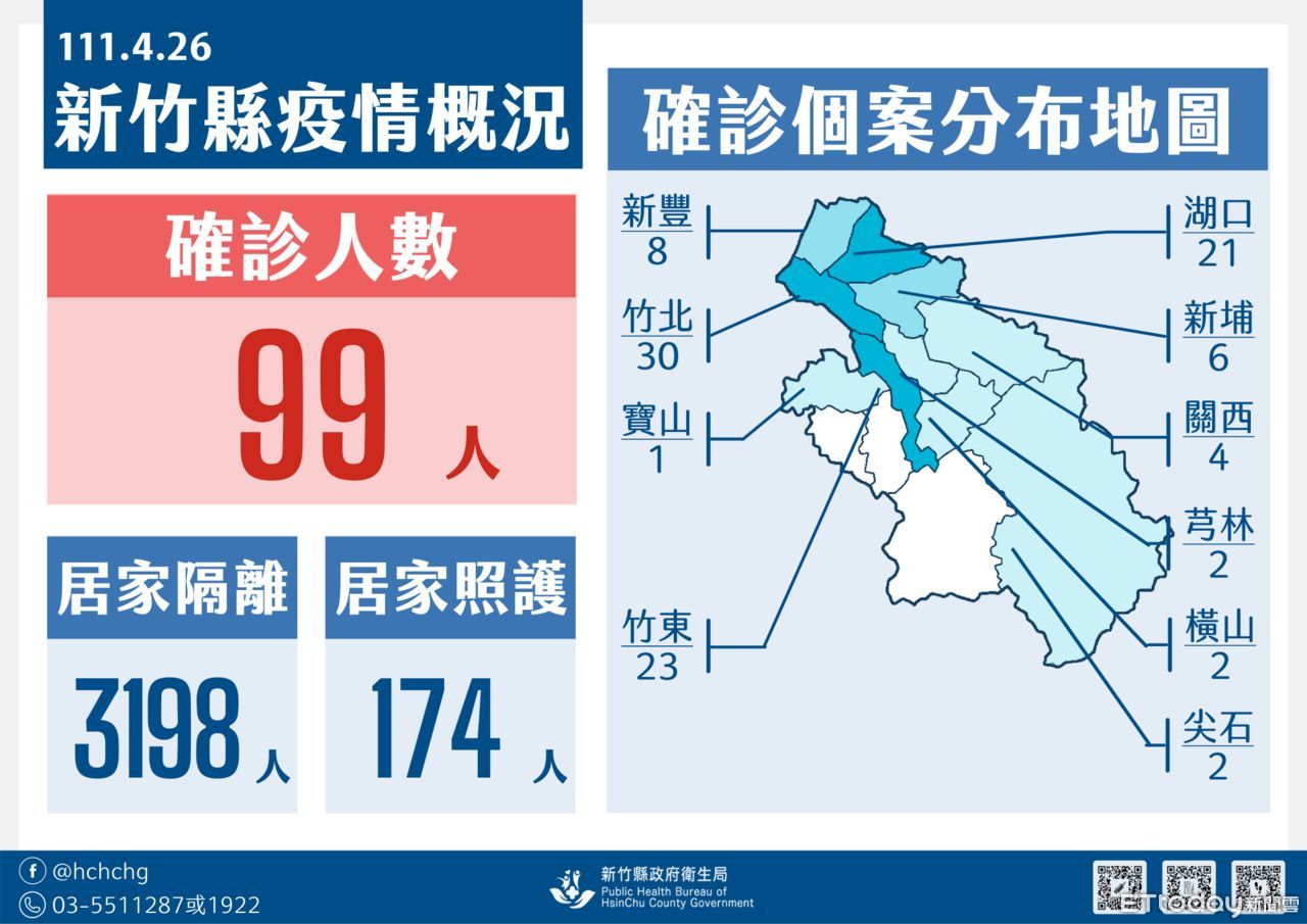▲竹縣26日新增確診人數達99人,其中竹北市30例為最多確診地區。(圖/記者黃孟珍翻攝)