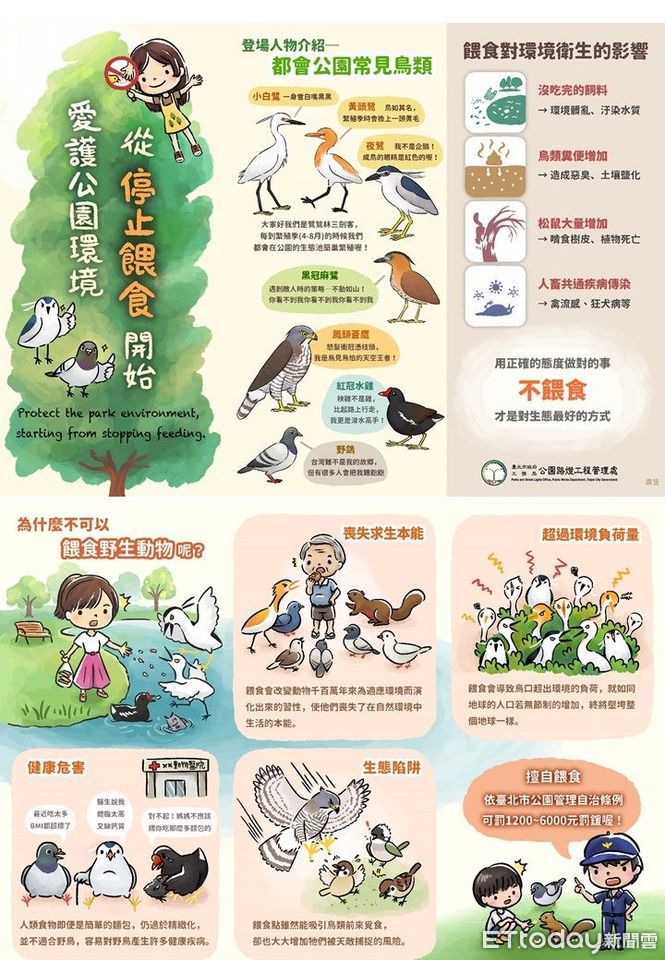 ▲台北市政府禁止公園內餵食野生動物的公告圖示 。(圖/翻攝台北市政府工務局網頁)