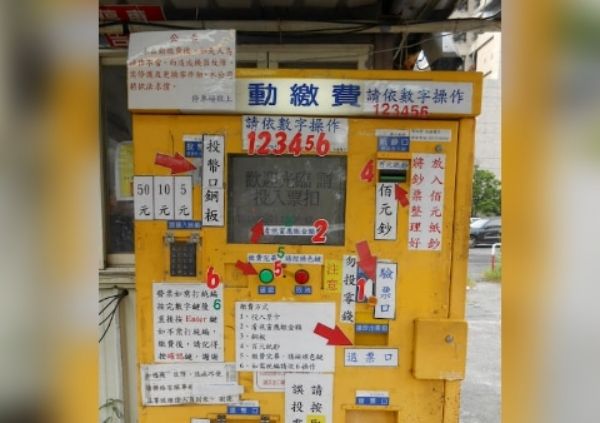 原PO在臉書「爆廢公社二館」25日的文章中提到,前往停車場繳費時,看到一台貼滿操作指示標語和步驟數字的繳費機,還有6個紅色的箭頭,當場傻住,「慘了,我沒有練過速讀,我只是要繳個錢而已」,而且看完機台上的說明後反而有種更難繳費的感覺,根本就是字謎繳費機,「搞錯是不是要重來?」