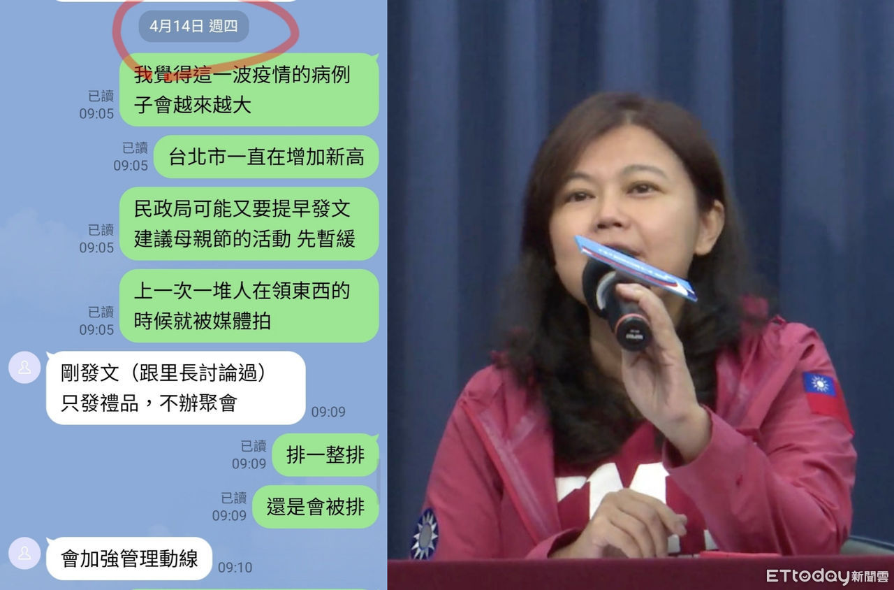 對此,游淑慧27日上午在臉書表示,自己4/14就提醒市府這波疫情會越來越大,但直到今天各局處許多活動仍照辦。游淑慧也上傳一張LINE截圖為證,顯示游4/14傳訊息給民政局,建議母親節活動先暫緩,而對方則回應,「剛發文(跟里長討論過)只發禮品,不辦聚會」。
