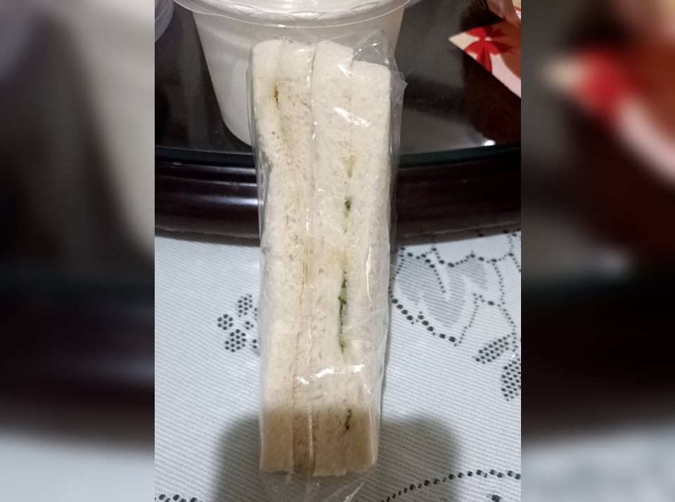 ▲原PO買回來的三明治,配料只有小黃瓜。(圖/翻攝自Facebook/爆廢公社)