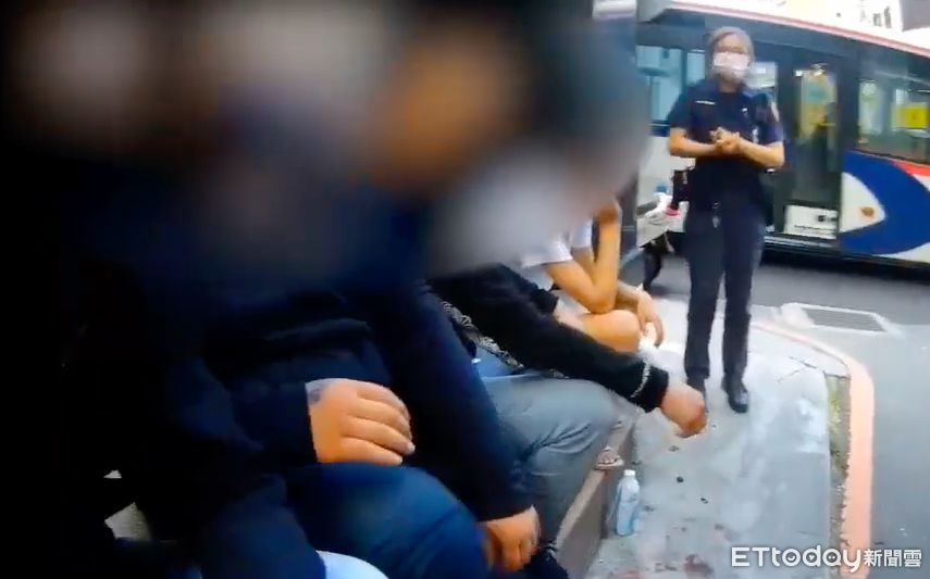 ▲警方在銀行外逮捕4名詐團成員 。(圖/記者陳以昇翻攝)