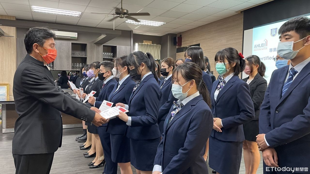 ▲國際認證協會理事長余紹君蒞校為中華醫大餐旅系28位通過國際餐旅管理專業人員認證考試的學生授證,中華醫大校長孫逸民偕同餐旅系的老師一起分享學生的榮耀。(圖/記者林悅翻攝,下同)